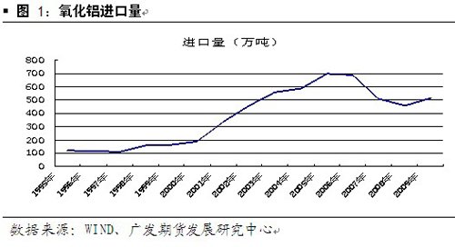隨著國內(nèi)電解鋁產(chǎn)能的增加,氧化鋁的需求也在不斷增大,從2006年到現(xiàn)在,我國用了不到三年的時間,實現(xiàn)了氧化鋁產(chǎn)量的翻番,自1318萬噸增長到2385萬噸。但仍滿足不了國內(nèi)電解鋁冶煉需求,國內(nèi)的電解鋁企業(yè)長期大量進(jìn)口氧化鋁。2009年,中國進(jìn)口氧化鋁514萬噸,占國內(nèi)總需求量的20%以上。2010年前6個月進(jìn)口氧化鋁接近232萬噸,全年總進(jìn)口量預(yù)計與2009年持平。