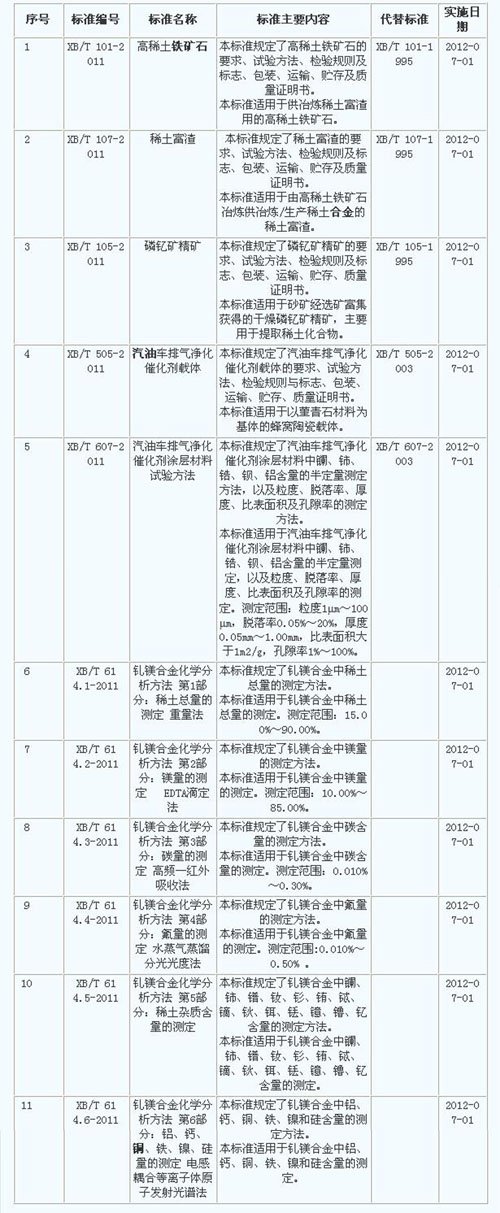 11項(xiàng)稀土行業(yè)標(biāo)準(zhǔn)