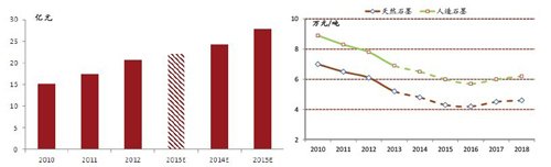 圖表2:中國負極材料市場規模快速增長(左圖),主要負極材料價格走勢(右圖)