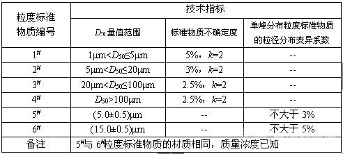 校準用粒度標準物質的技術指標