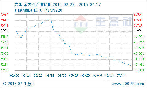 根據生意社數據監測顯示上周炭黑價格走勢平穩,周末價格為5290元/噸,較周初價格5300元/噸持平,同比下滑16.99%。