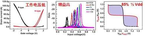 圖2 高性能印刷柔性CMOS反相器