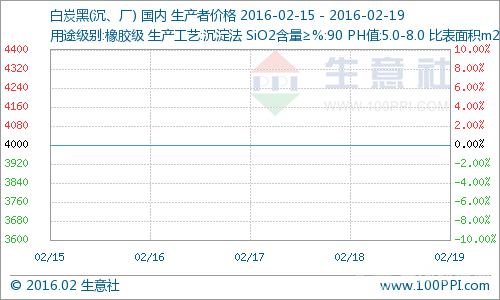 上周沉淀級白炭黑市場價格保持穩定,年后,國內沉淀白炭黑市場需求依然偏弱,庫存高,新年剛過,多數廠家開始恢復生產,價格穩定。山東地區白炭黑市場價格繼續保持穩定,庫存正常,銷售一般;江蘇地區白炭黑市場價格也保持穩定,貨源走銷一般,廠家開始恢復生產銷售,價格穩定。目前橡膠級產品(80-600目)價格在3300-4800元/噸之間,硅膠級產品價格在5500-6400元/噸之間。
