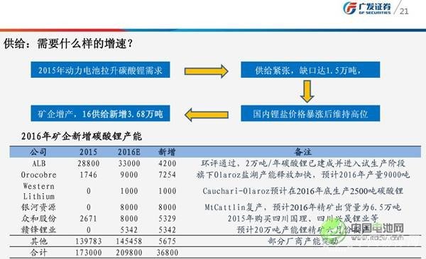 廣發證券發展研究中心股份有限公司總監巨國賢認為,受動力電池出貨量暴增帶動,碳酸鋰市場需求迅速上升,2015年碳酸鋰供給缺口達1.5萬噸,供不應求驅動價格在第四季度進入快速上升通道。產品價格由15年初4萬元/噸左右快速上漲至16-17萬的水平。2016開年以來,價格延續2015年走勢進一步上漲回落。目前電池級碳酸鋰價格在13.5至14萬元/噸左右。隨著新能源汽車補貼政策落地以及三元電池應用放開,將會快速刺激碳酸鋰需求增長,根據供需關系,以及行業景氣度在持續上升,預計碳酸鋰價格將會趨于理性。