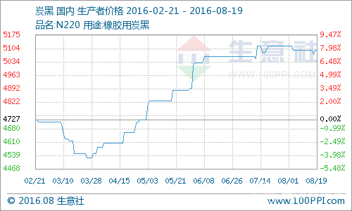 根據(jù)生意社數(shù)據(jù)監(jiān)測顯示炭黑N220型號價格走勢如下: