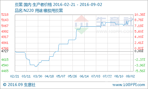 根據(jù)生意社數(shù)據(jù)監(jiān)測(cè)顯示炭黑N220型號(hào)價(jià)格走勢(shì)如下:
