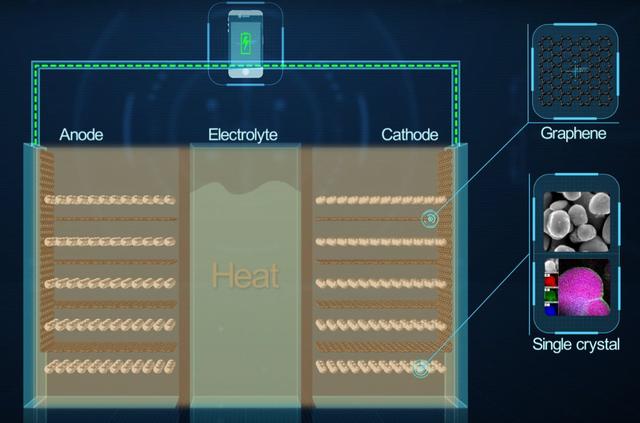據悉,華為石墨烯基電池的突破主要來自三個方面,首先是在電解液中加入特殊添加劑,除去痕量水,避免電解液的高溫分解,其次,電池正極選用改性的大單晶三元材料,提高材料的熱穩定性;此外,由于采用新型材料石墨烯,可實現鋰離子電池與環境間的高效散熱。