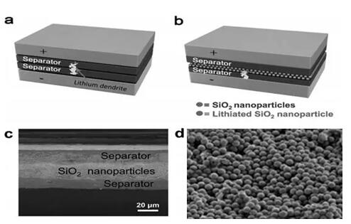 (2)納米二氧化硅顆粒的堆積可為鋰離子和電解液的透過提供足夠的空間;