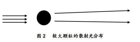 顆粒越細,散射光的角度越小。當顆粒幾何尺寸達到亞微米級別時,大于90度散射角散射光將明顯增強。微小顆粒的散射光甚至在360度范圍內都有分布,如圖1所示。