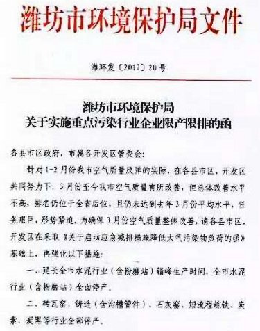 記者獲悉,此次炭黑企業停產,是濰坊市在《關于啟動應急減排措施降低大棋污染物符合的函》的基礎上,實施的強化措施。目的是為了確保3月份空氣質量整體改善。