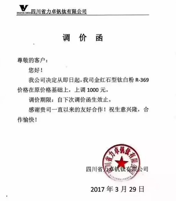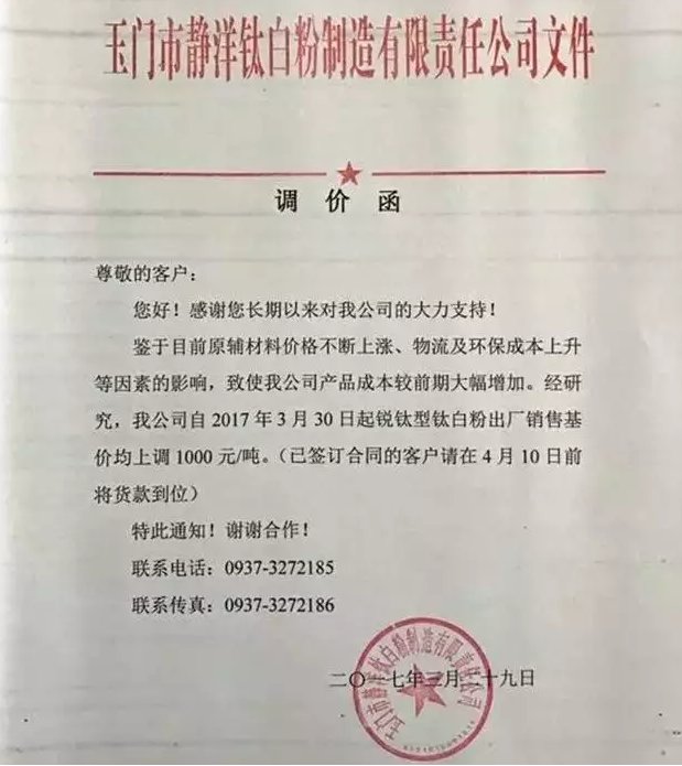 中國粉體網訊 鈦白粉抓住三月的尾巴,又一次漲價。