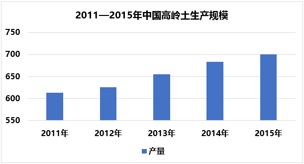 中國(guó)作為全球第二大造紙國(guó)和主要的陶瓷生產(chǎn)國(guó),每年對(duì)高嶺土的需求量十分巨大。2015年高嶺土需求量達(dá)到626.99萬(wàn)噸。盡管中國(guó)同時(shí)也是高嶺土的重要生產(chǎn)國(guó),2015年產(chǎn)量約為700萬(wàn)噸,部分出口,但由于高嶺土品質(zhì)的問題,目前我國(guó)陶瓷用高嶺土的供給充足,造紙用的高端涂料級(jí)高嶺土依然主要依賴進(jìn)口。