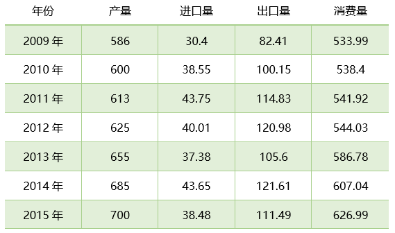 2009-2015年中國(guó)高嶺土行業(yè)供需平衡情況(萬(wàn)噸)