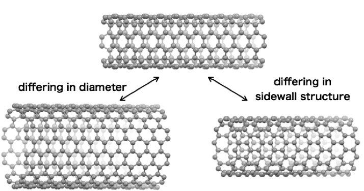 圖1.具有不同直徑和側(cè)壁結(jié)構(gòu)的碳納米管。 榮譽(yù):名古屋大學(xué)