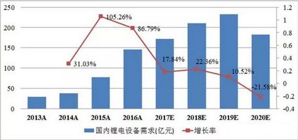 圖1 國內鋰電設備需求預測