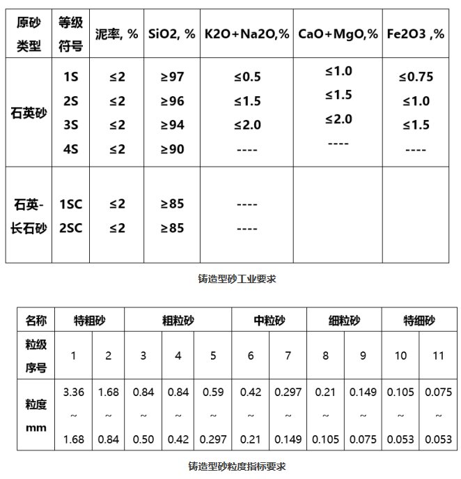 ②噴砂:化學工業(yè)清除銹,往往采用噴砂處理。要求SiO2>99.6%,Al2O3<0.18%,Fe2O3<0.02%,粒度50~70目,粒形為球形,莫氏硬7。