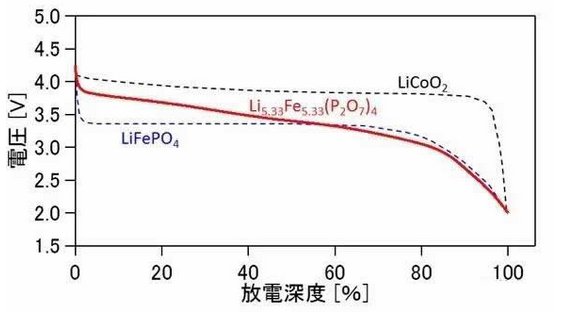 此次富士通發現讓鐵原子周圍的氧原子的位置產生變形是提高電壓的一個重要因素,并開發出了新材料Li5.33Fe5.33(P2O7)4,所制作的紐扣電池也獲得了3.8V的電壓。這比以往以LiFePO4為代表的磷酸鐵系電池還要高。但是用試制的紐扣電池實驗得到的放電容量為105mAh/g,這一結果比139mAh/g的理論值以及LiCoO2的137mAh/g都要低25%左右,還有待于今后的進一步開發與改進。