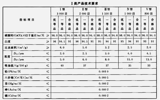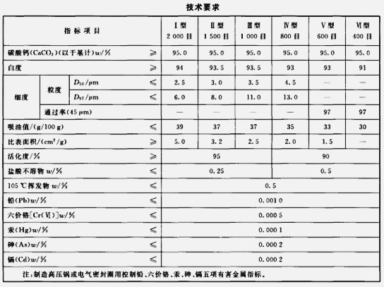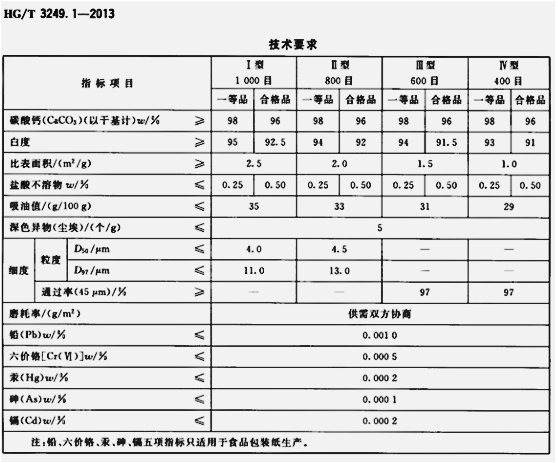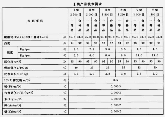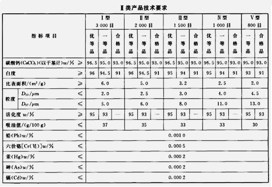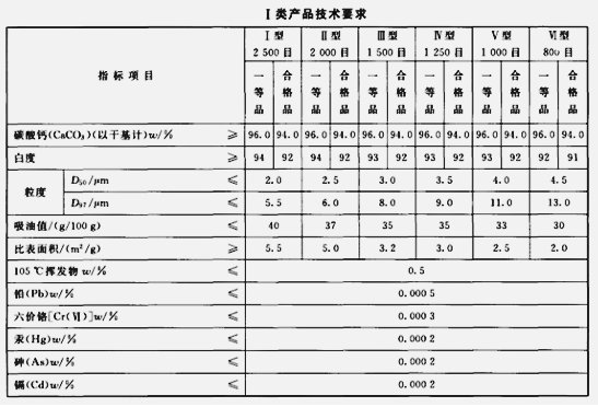 工業用重質碳酸鈣標準: