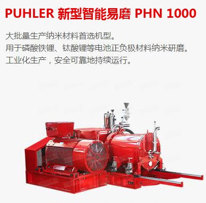 PUHLER新型智能易磨PHN1000VE是大批量生產納米材料首選機型,用于磷酸鐵鋰、鈦酸鋰等電池正負極材料納米研磨,工業化生產,安全可靠地持續運行。也可用于圖像催化劑、拋光劑、液晶顯示器、多層陶瓷電容、陶瓷、玻璃、陶瓷顏料、工業陶瓷、顏料、染料、二氧化鈦、顏料的生產、印刷油墨、噴墨、陶瓷噴墨墨水、氧化鋯、硅酸鋯及電池磷酸鐵鋰、三元材料、碳納米管、鈦酸鋰、石墨烯等材料的研磨。