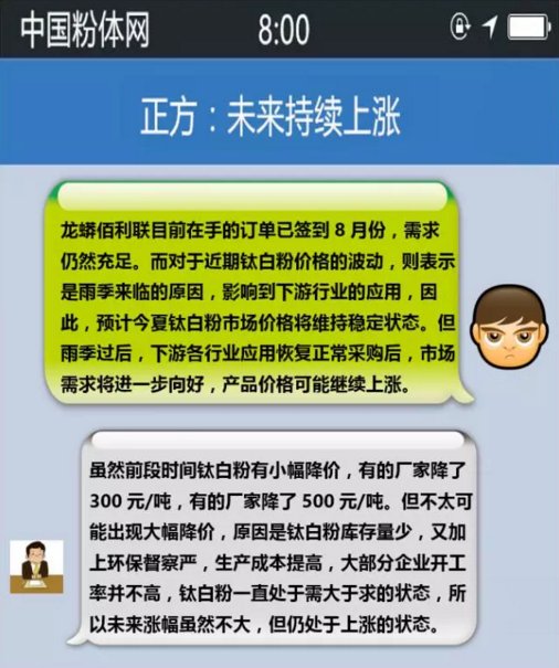 中國粉體網訊 7月開始,鈦白粉國際巨頭們又開始了新一輪的漲價,每噸上調幅度在200美元/噸—300美元/噸,國內鈦白粉廠商表示并不意外。鈦白粉自打去年以來處于持續性上漲模式,今年5月以來出現了近1年來唯一一次降價,降價幅度相比漲幅基本可以忽略不計。那么鈦白粉未來價格的是上漲還是下跌?