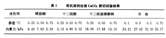 由表中可看出:用不同改性劑、不同摻量處理CaCO3粉體,分散效果也不同。