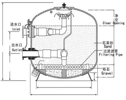 砂濾器,即石英砂過濾器,學名為淺層介質過濾器。它是利用石英砂作為過濾介質,在一定的壓力條件下,濁度較高的水體自上而下通過一定厚度的粒狀或非粒狀石英砂,水體中部分廢物被截留在砂體中,最終達到降低水體濁度、凈化水質的目的。