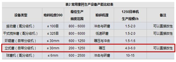 從超細產品的單機生產規模看,沖擊磨、干式砂磨機和環輥磨的單機生產能力都偏小。相比較而言,球磨機和立式磨在同等情況下可以獲得更高的產量,易于實現重鈣規模化加工。