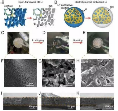 2、一種將納米鋰金屬嵌入離子型導電固體基質中制備出的三維穩定的鋰金屬負極