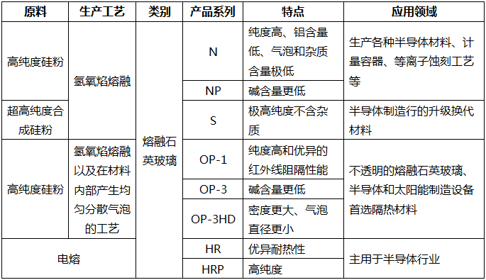 從產品特性看,公司的適應產品是由熔融石英玻璃制成,相對于普通玻璃熔融石英的微量元素含量大大降低,氣泡含量少。具有高光學透明性、化學穩定性、高溫抗變形、超低熱膨脹系數和優良的抗熱震性。