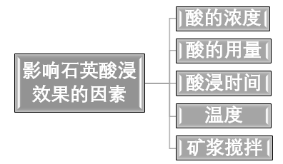 酸浸是利用石英不溶于酸(HF除外),其他雜質(zhì)礦物能被酸液溶解的特點,從而可以實現(xiàn)對石英的進一步提純。酸浸常用酸類有硫酸、鹽酸、硝酸和氫氟酸等;還原劑有亞硫酸及其鹽類等。
