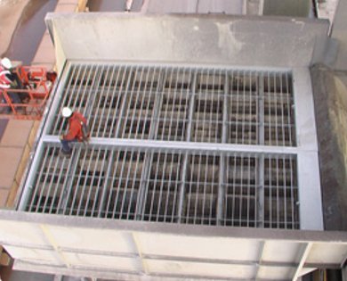 DS無動力擋塵封通常直接懸掛在格柵下方,只需要很小的深度。此外,如果現場配置收塵裝置,那么收塵裝置的收塵罩、管道、收塵器及風機等的尺寸及配置都會大大降低,因為收塵器抽取的含塵氣流的體積大大降低了。