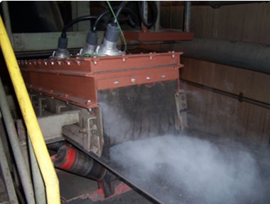 DryFog TM超聲波抑塵系統使用非常特殊的技術,產生非常細的“干霧”(大多數低于5微米)。這些超微霧滴和空氣中的粉塵顆粒非常接近。采用與粉塵徑粒相同、運動狀態相同的“干霧”與粉塵凝聚,體積和質量增大后而快速沉降,返回產品作業環節。DryFog TM超聲波抑塵系統只是濕潤空氣中的粉塵,而不是物料本身,將對設備及物料的濕度的影響降到最低。