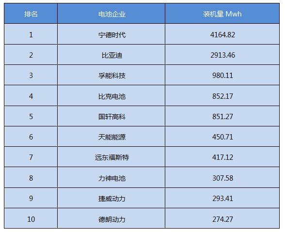 2017年新能源乘用車配套的動力電池企業達55家。眾多企業中排名前五的電池企業分別是:寧德時代、比亞迪、孚能科技、比克動力和國軒高科。寧德時代以裝機量4164.82 Mwh穩居第一。也是新能源乘用車配套動力電池企業唯一一家裝機量超過4000 Mwh的企業,是位居第二的比亞迪的1.43倍。在如今行業集中度逐步提升的同時,強者之間競爭的優勢也突顯出來,寧德時代和比亞迪兩家占到十家總裝機量的60%以上。