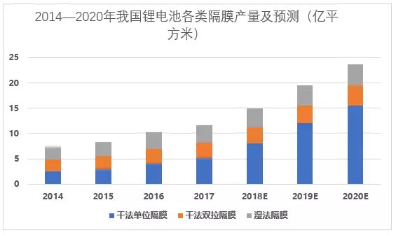 隨著動(dòng)力鋰電池市場(chǎng)的快速發(fā)展,預(yù)計(jì)到2018年,國(guó)內(nèi)濕法隔膜產(chǎn)量將達(dá)到8億平方米,占據(jù)隔膜一半以上市場(chǎng)。