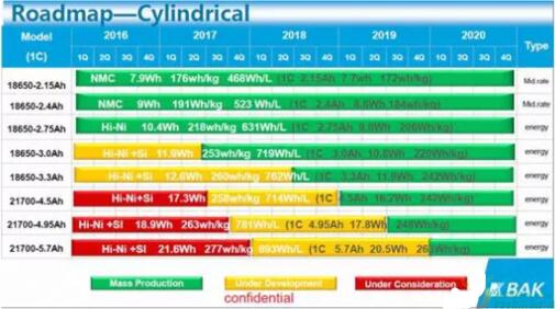 比亞迪:目前比亞迪磷酸鐵鋰電池的單體能量密度為150Wh,而接下來比亞迪計劃將能量密度繼續提升到160Wh。除了磷酸鐵鋰電池,比亞迪也在同步開發三元鋰電池,而如果將三元鋰電池的技術結合到磷酸鐵鋰電池上,對原有用石墨作為負極材料的做法進行一些調整,那么在2020年左右,比亞迪計劃將磷酸鐵鋰電池的單體能量密度提升到200Wh。
