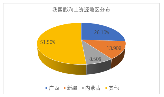 世界上膨潤(rùn)土資源主要分布在中國(guó)、美國(guó)和原蘇聯(lián),三國(guó)探明儲(chǔ)量約占世界總儲(chǔ)量的4/5。中國(guó)儲(chǔ)量居世界首位,占世界總量的60%。
