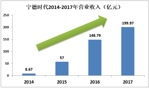 從2015年新能源汽車開始崛起,寧德時代也進入了飛速發展的階段,2016年,寧德時代在動力電池方面的市場份額超過比亞迪,以23.3%的市場占有率雄踞國內第一。從近4年的營業收入來看,寧德時代的發展勢頭相當高了。