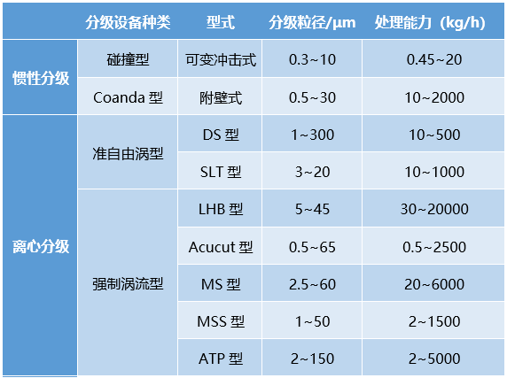 干式超細分級多為氣力分級,適用于干法微米級產品的精細分級。根據干式分級的原理不同,目前工業上應用的干式超細分級設備主要有離心式和慣性式。