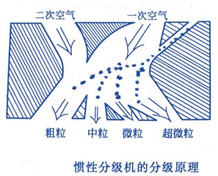 顆粒運動時具有一定的動能,運動速度相同時,質量大的其動能也大,即運動慣性大。當它們受到改變其運動方向的作用力時,由于慣性的不同會形成不同的軌跡,從而實現大小顆粒的分級。