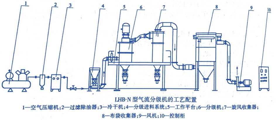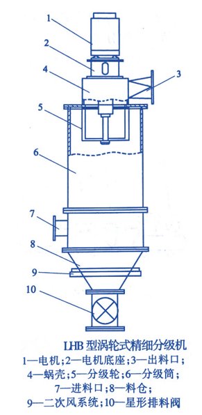 LHB型氣流分級機與球磨機超細機械沖擊磨、氣流粉碎機等配套或單獨設置,已廣泛應用于煅燒高嶺土、滑石、重鈣、重晶石、云母、氧化鋁、氧化鋯、氧化鎂、碳化硅、鈷酸鋰等粉體的精細分級。