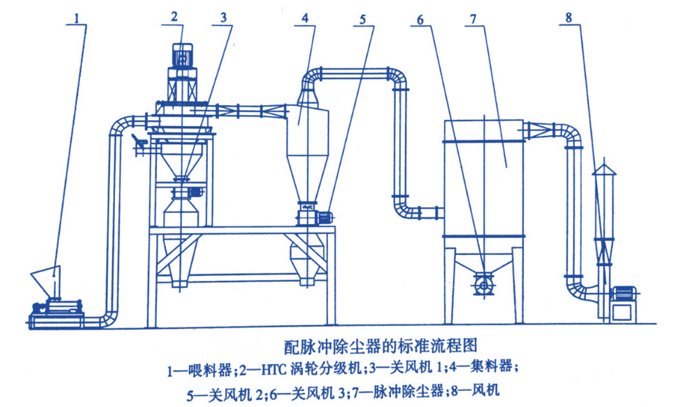 HTC渦輪分級機與球磨機、超細機械沖擊磨、氣流粉碎機等配套或單獨設置,已應用于重鈣、滑石、高嶺土、氧化鋁、氧化鋅以及化工原料、食品等粉體的精細分級。