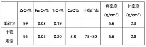 電熔氧化鋯包括單斜電熔氧化鋯和半穩定型氧化鋯,單斜電熔氧化鋯的晶型為單斜型,半穩定型氧化鋯晶型為單斜、四方和立方3種晶型混合存在。