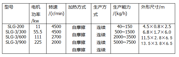 SLG型連續粉體表面改性機的主要技術參數