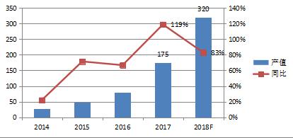 圖表4 2014-2018年中國三元材料市場規模及預測