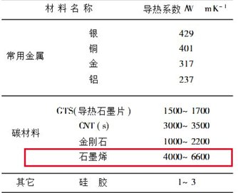 美國加州大學(xué)的一項(xiàng)研究顯示,石墨烯的導(dǎo)熱性優(yōu)于碳納米管。普通碳納米管的導(dǎo)熱系數(shù)可達(dá)3000W/mK以上,各種金屬中導(dǎo)熱系數(shù)相對較高的有銀、銅、金、鋁,而單層石墨烯的導(dǎo)熱系數(shù)可達(dá)5300W/mK,甚至有研究表明其導(dǎo)熱系數(shù)高達(dá)6600W/mK。優(yōu)異的導(dǎo)熱性能使得石墨烯有望作為未來超大規(guī)模納米集成電路的散熱材料。