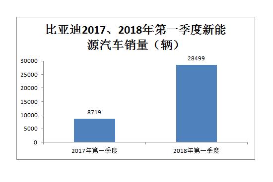 比亞迪新能源汽車第一季度的銷量共28499輛,同比增長227%,繼續占據新能源市場制高點。