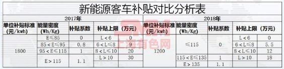 中國新能源汽車補貼政策,長期對技術路線和產業方向做指引。通過對比2018年最新的新能源客車的比較如下: