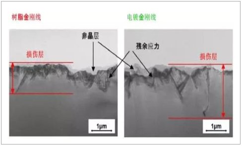 樹(shù)脂線切割的硅片的破損層要比電鍍線加工的硅片薄,特別是裂痕距減小。