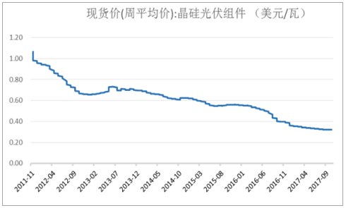 近年來(lái)晶硅光伏組件價(jià)格走勢(shì)圖