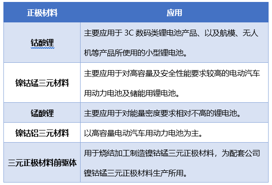 鋰電池正極材料主要產品有4個系列:鈷酸鋰系列產品、多元材料系列產品、錳酸鋰系列產品和三元前驅體。